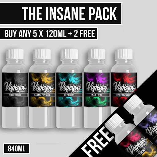 What’s Included in Your E-Liquid Pack? The Insane Pack – 120ml Bottles Choose your preferred nicotine strength and get incredible value with our In...
